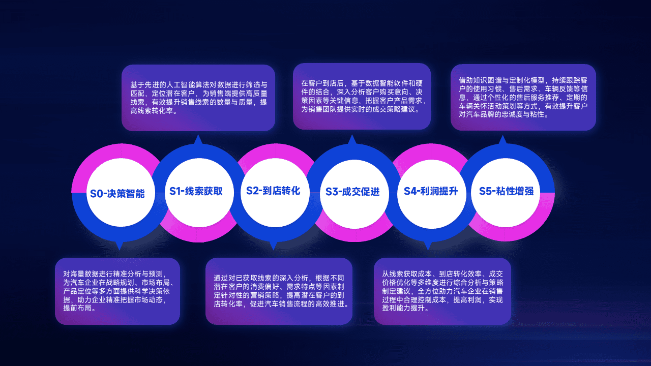 通过拓宽潜在客户来源、、优化线索分配并提高到店转化率,,,,以增强销售效率。。。。同时,,利用线索数据不断优化分析模型,,,,有效提升转化率,,扩大营销影响力。。。。